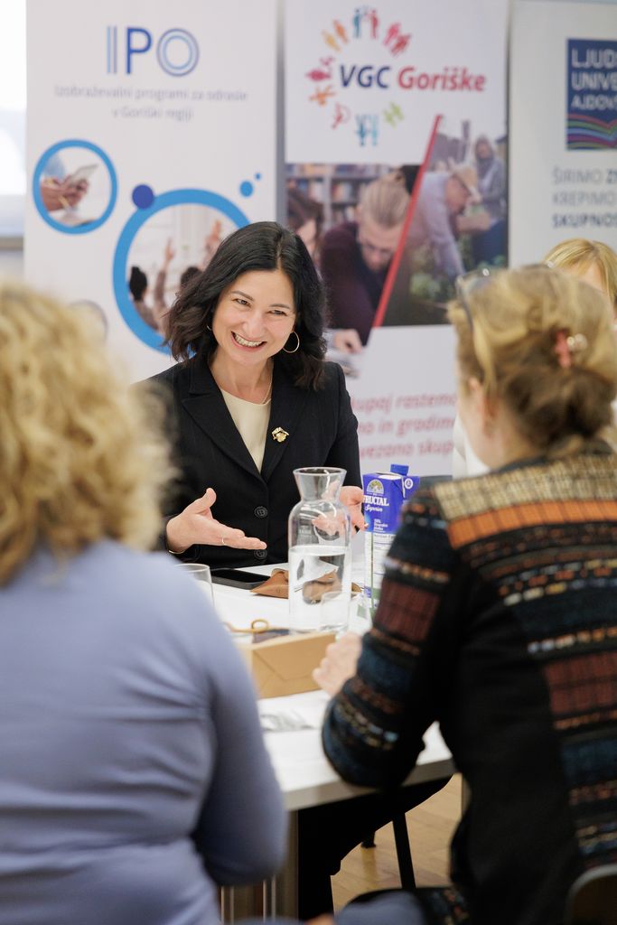 Direktorica Eva Mermolja je predstavila Ljudsko univerzo Ajdovščina kot osrednjega ponudnika izobraževanja odraslih v lokalnem okolju ter izpostavila njen pomen in vlogo. Poudarila je pomembnost zagotavljanja dostopnosti do izobraževalnih programov in svetovalnih storitev v lokalnih okoljih. Ker dobro poznajo potrebe in specifike lokalnega okolja, se lahko hitro prilagodijo prepoznanim potrebam prebivalstva in gospodarstva. Zavedajo se pozitivnih učinkov povezovanja in sodelovanja v skupnosti, zato sodelujejo s številnimi organizacijami, institucijami in podjetji.