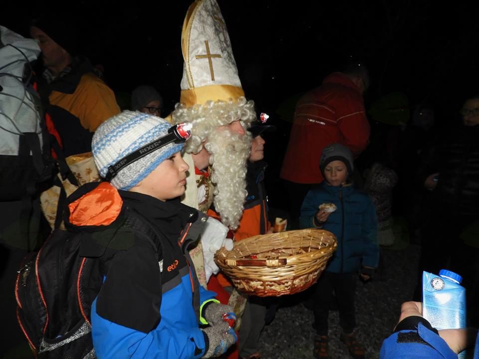 December smo začeli z Miklavževim nočnim pohodom. Nekaj manj kot 200 ljubiteljev narave se je v petek 1. decembra pozno popoldne zbralo pri lovski koči nad Gojačami. Od tu smo se v strnjeni koloni lučk ob soju polne lune podali po kolovozni planinski poti in po dobri uri hoje prispeli do planote pod Čavnom, kjer stoji obnovljena cerkvica svetega Pavla. Tam nas je z dobrotami in vročim čajem pričakal sam sv. Miklavž. Po klepetu, druženju in seveda fotografiranju z dobrim možem, smo se po krožni poti spustili nazaj v dolino.