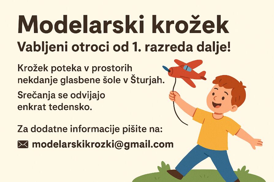 Zato vsi otroci, ki se navdušujete za svet tehnike, lepo vabljeni, da se pridružite modelarskemu krožku MD Ventus.