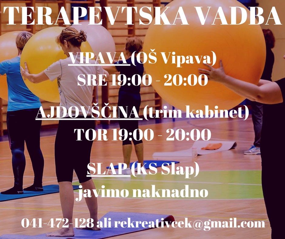 - TERAPEVTSKA VADBA (Ajdovščina, Vipava in Slap-NOVO) obvezne predprijave