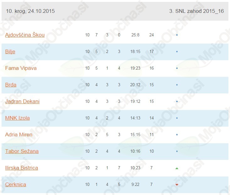 Ajdovščina Škou je po dobri tretjini sezone 2015/2016 v 3. SNL zahod, prepričljivo in zasluženo z sedmimi točkami prednosti pred prvim zasledovalcem na vrhu lestvice. V dosedanjem delu prvenstva so fantje pod vodstvom trenerja Jana Vidica prikazali izredno dobro pripravljenost vseh 90 minut, kar se je na nekaterih srečanjih izrazito poznalo, saj so na podlagi dobrega "minulega dela", v drugem delu tekme napolnili mrežo nasprotnika. Razveseljivo je tudi, da igra kolektiv, ni izrazitega posameznika in med strelce se lahko vpiše vsak igralec. Prav dopadljiva in učinkovita igra privablja ob nedeljah popoldne na mestni stadion vse več gledalcev, ponovno se po tekmah v bližnjem lokalu še dolgo razglablja o "detajlih" , med katerimi je veliko znanih obrazov iz preteklosti Ajdovskega nogometa (Brecelj, Marjanović, Fučka, Doljak, Jug,...).