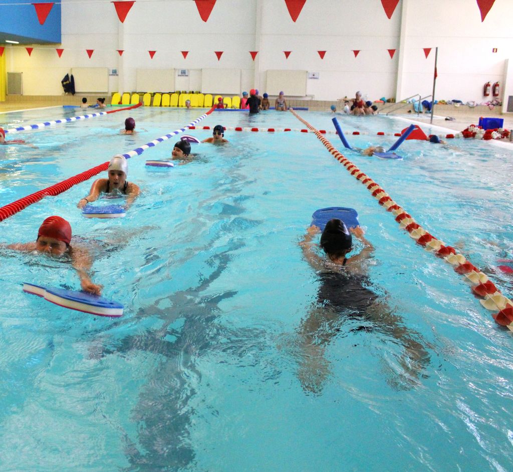 ▶️ Otroci so vsako uro razdeljeni v 3 skupine glede na njihovo predhodno znanje plavanja.