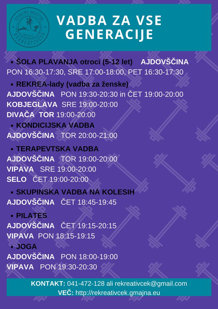 - SOCIALIZACIJA: Skupinske vadbe ponujajo priložnost za druženje in spoznavanje novih ljudi, ki imajo podobne interese in cilje. To lahko posamezniku pomaga izboljšati socialne veščine ter povečati občutek pripadnosti.