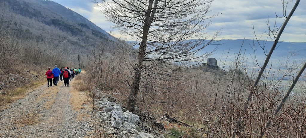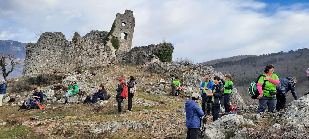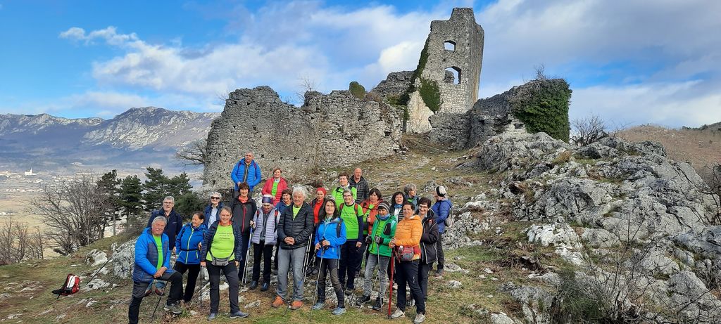 Ko smo zjutraj prihajali na zbirni mesto za starim mlinom, je bilo oblačno, tu pa tam je padla še kakšna kaplja dežja. Vedeli smo, da se bo jutro spremenilo v lep dan. Posedli smo se v avtomobile in odpeljali v Vipavo. S parkirišča pri vojašnici smo zavili na kolovoz, pri kapelici ob cesti, ki pelje v Vrhpolje, smo zavili na desno in čez mostiček potoka Bela. Po nekaj korakih v strmino smo prišli do smerokazov. Sledili smo smerokazu za Vrhpolje, kjer smo si ogledali župnijsko cerkev sv. Primoža in Felicijana. Cerkev stoji v osrednjem delu Vrhpolja. Zgrajena je bila v 19. stoletju po načrtih takratnega dekana Jurija Grabrijana. Prenovljena je bila leta 2013. Po ogledu smo se vrnili do smerokazov, pot nadaljevali v levo navzgor. Po strmi požarni cesti smo se od jutranjega mraza hitro ogreli in en rokav je bil že preveč. Na vrhu klanca je sledil spust. Kmalu smo v daljavi zagledali naš cilj – Stari grad. S poti smo občudovali lepe razglede na vas Vrhpolje pod nami in širšo Vipavsko dolino vse tja do Gore. Na križišču poti Vipava - Plaz smo se še vedno spuščali po kolovozu in stezici, ko smo pred seboj uzrli razvaline gradu. Še nekaj korakov in bili smo v notranjosti grajskih razvalin. Ustavili smo se pred informativno tablo, ki opisuje nastanek gradu in življenje v njem. Vsebino nam je prebrala Tea. Grad stoji na 241-metrski vzpetini nad Vipavo. Zgrajen je bil v 12. stoletju. Leta 1528 je grad zaradi turški vpadov dobil še obzidje. Upravljale so ga različne rodbine; grofje Adeški, oglejski patriarhi, baron Herberstein, grofje Lanthieri. Grad je začel razpadati v 17. stoletju, ko so ga njegovi zadnji lastniki opustili, od njega so ostale samo še razvaline. Kot tak sedaj nudi lepo izletniško točko. V zadnjem času so grad očistili grmovja. Tako je še bolj viden tudi od daleč.