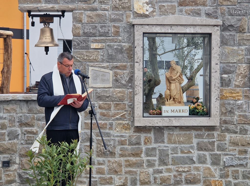 Pred blagoslovom kapelice in zvona je župnik Zoran poudaril namen znamenj, ki jih postavljamo ob bok našemu vsakdanjemu delu in sicer pozitivno naravnanost vodij, ki jo prenašajo na svoje sodelavce ob tihem varstvu zavetnikov. Blagoslovu je sledilo še maziljenje zvona in preizkus glasu.