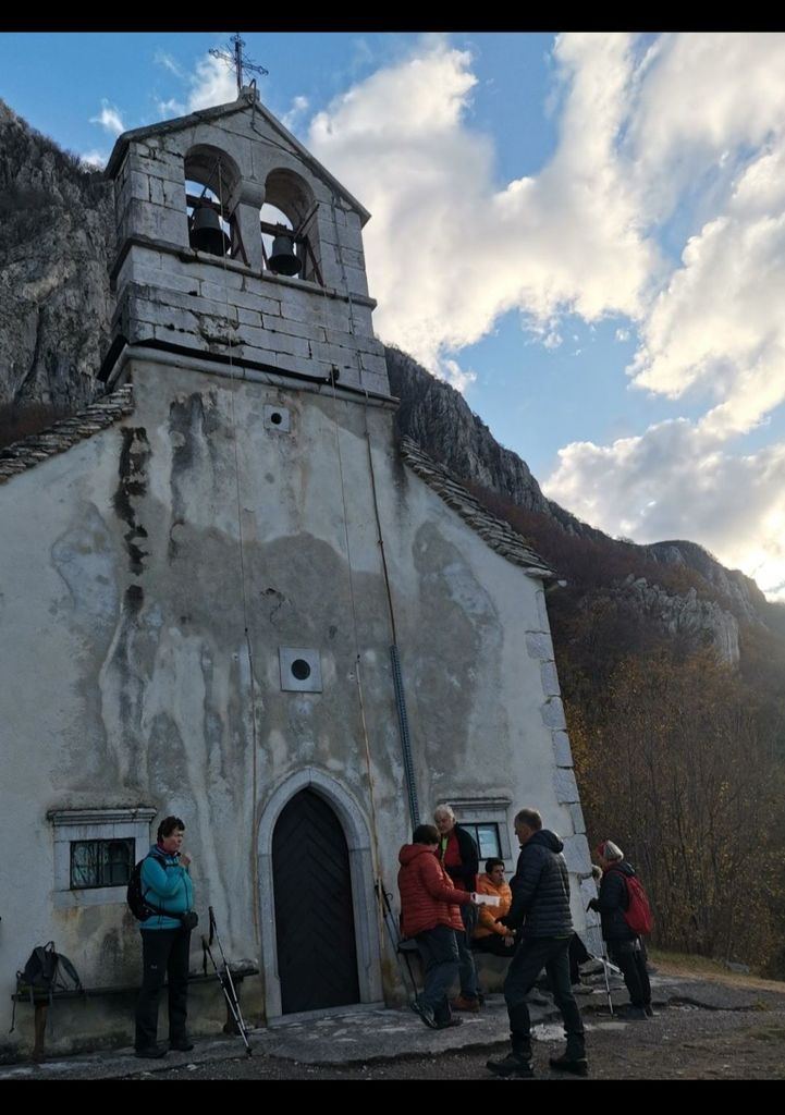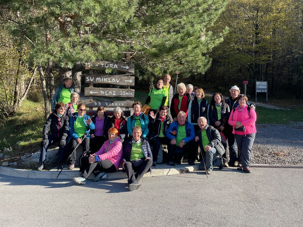 Široka in kar lepi cesti podobna pot nas je vabila k povratku. Kmalu smo ugotovili, da je bil to le “reklamni oddelek” lepe poti, saj so spolzki kamni zahtevali umirjene stopinje, palice so bile primerna pomoč. Počasi smo se spuščali proti dolini in na položnem delu kolovoza že šumeli s suhim listjem po poti. Toda Miklavža redno spremljajo tudi parklji; mi jih sicer nismo srečali, so nam pa pošteno zagodli, ko so vse vode izpod Nanosa nalovili prav na našo pot. Tako smo malo počofotali, mnogi smo ob ugreznjenem stopalu v blato rekli “o, Marija”. In teh “o, Marija! Je bilo kar precej, pa tudi “o, kako lepo,” je bilo slišati ob klopotanju mlinčka, ki ga je nekdo postavil sredi potočka. Samo globok občudujoč vzdih smo namenili umetni votlini, ki jo je, spet nekdo, naredil iz ogromnih skalnatih blokov. Doumeli smo, da mlade trte v najvišjem vinogradu lahko najdejo dovolj vode, ker smo jo mi imeli to dopoldne vrh glave dovolj. Počasi smo prišli do sončne jase, opazili mrežnato ograjo igrišča in presenečeno ugotovili, da smo pravzaprav že na cilju. Še fotografiranje, šaljivi komentarji ob razstavljenih strganih plezalkah in gojzarjih, nekaj krepkega in zdravilnega za telo, pa veliko dobre volje in zadovoljstva, saj je prijetno dopoldansko druženje hitro minilo in krepilo naša srce in duše.