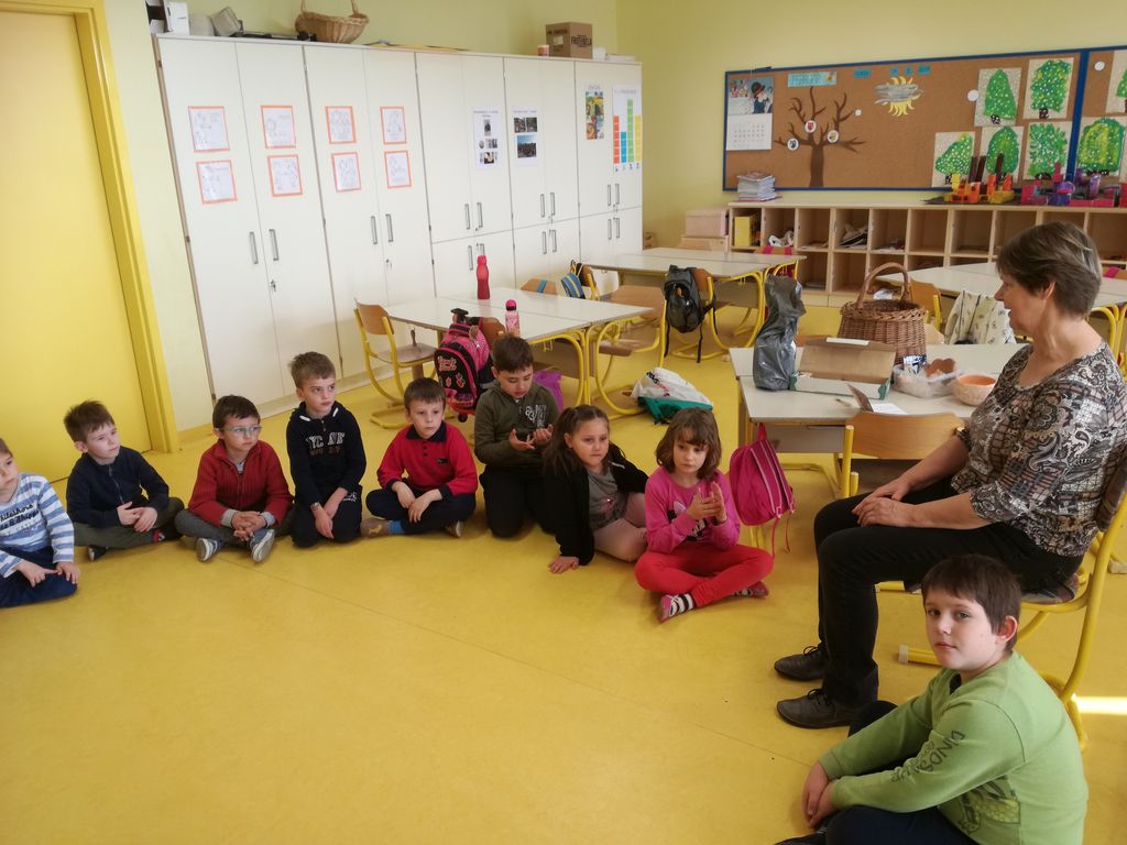 V prvih razredih smo gostili upokojeno učiteljico go. Klavdijo Štrancar. Učenci so prisluhnili zanimivemu pripovedovanju pravljice. Z različnimi živalmi, ki so iskale ime čudovitega drevesa, so potovali v svet domišljije. Četrtošolcem pa je prebrala zgodbo o violinistu. Nato pa so še ustvarjali likovna dela z ogljem.