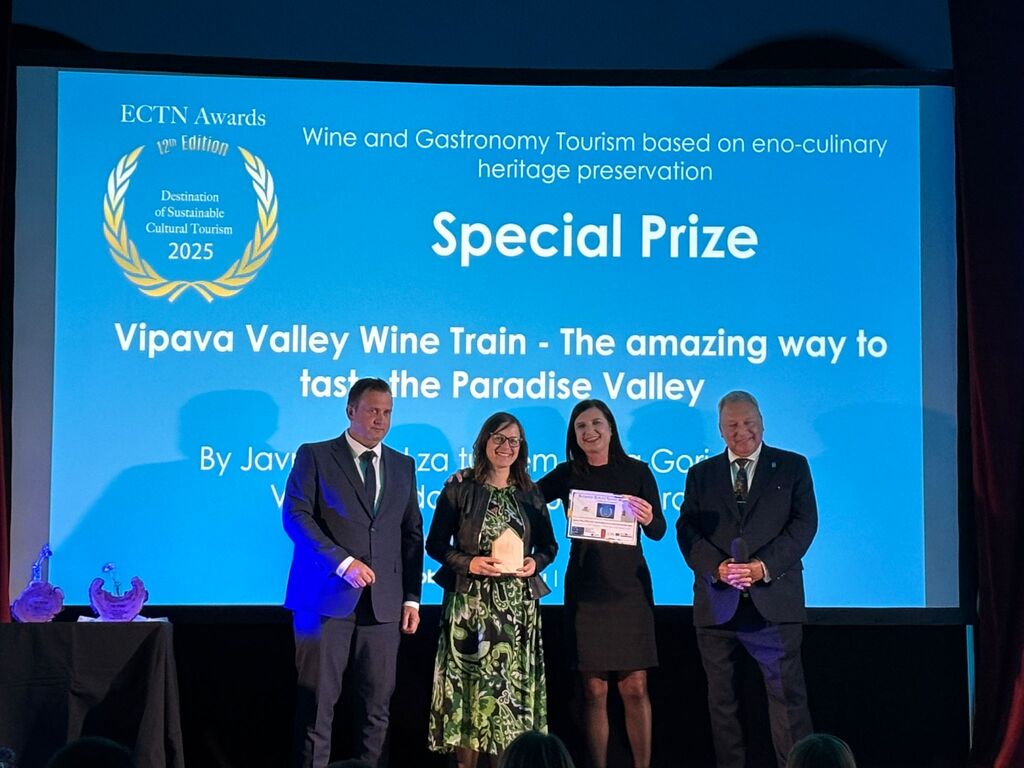 Projekt Vinski vlak Vipavska dolina je na letošnjih mednarodnih nagradah ECTN Awards 2025 prejel posebno priznanje za inovativni pristop k trajnostnemu razvoju vinskega in gastronomskega turizma. Nagrade podeljuje Evropska mreža za kulturni turizem (ECTN) v sodelovanju z Evropsko potovalno komisijo (ETC), Europa Nostra in NECSTouR, z namenom spodbujanja trajnostnih praks kulturnega turizma po vsej Evropi.