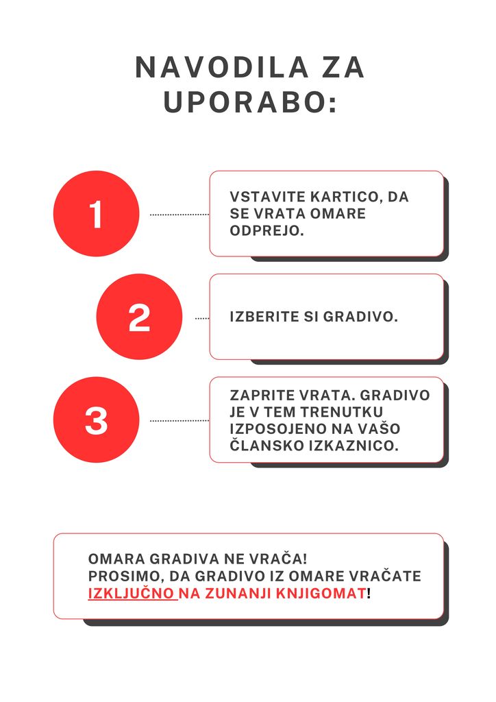 Iz omare izposojeno knjižno gradivo člani obvezno vračajo na zunanji knjigomat oz. vračalnik.