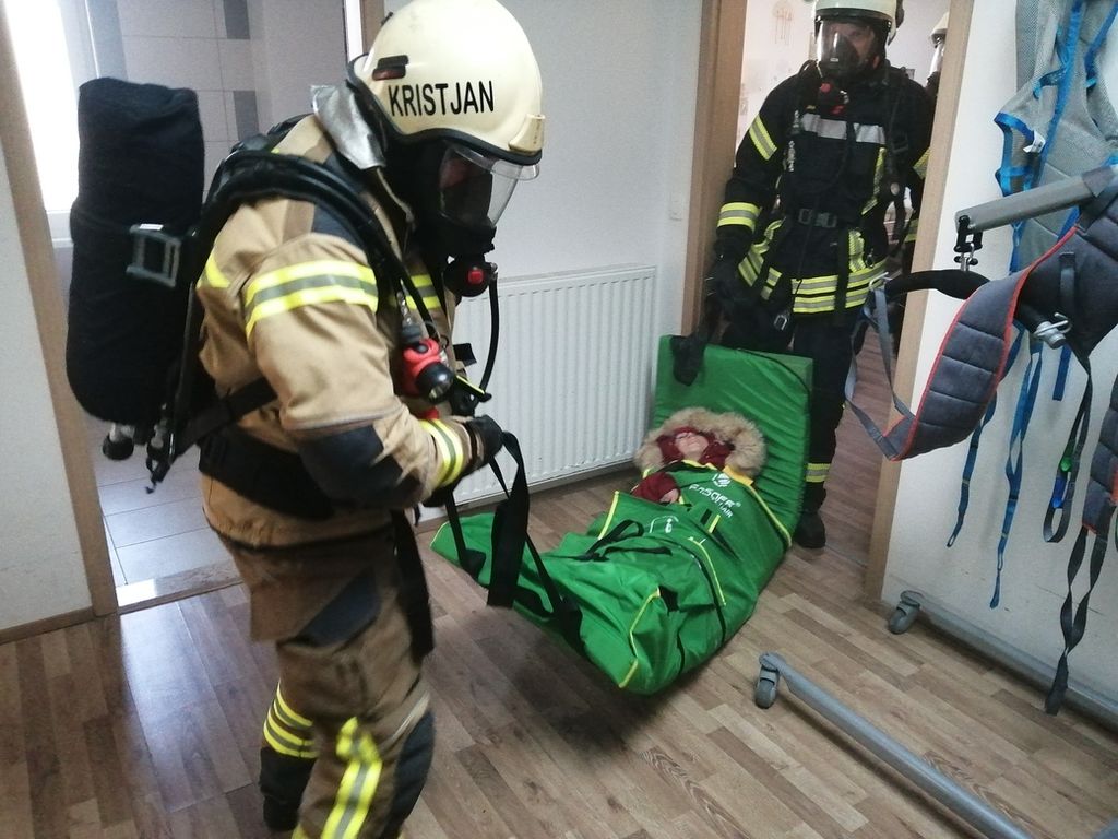 Vaje so se udeležili tudi vsi zaposleni, ki delajo v bivalni enoti. Čeprav smo vajo vzeli zelo resno, je bila za vse sodelujoče, tako zaposlene kot uporabnike, to ne samo zanimiva in poučna, temveč tudi zabavna izkušnja. Nekateri uporabniki so se sami evakuirali, drugim so pri tem pomagali zaposleni, nekatere pa so na varno 'odnesli' gasilci. Posebej zanimiva je bila izkušnja za uporabnike, ki so jih gasilci reševali s pomočjo naše nove evakuacijske blazine, ki omogoča hitrejši in varnejši prenos oseb po stopnicah iz prvega nadstropja naše bivalne enote.