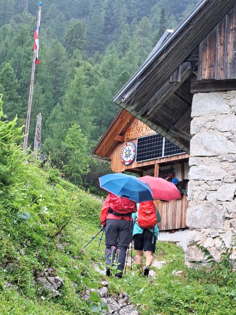 Vrhunec našega sodelovanja vsako leto predstavlja dvodnevni izlet v hribe, saj ima spanje v koči za nas poseben čar. Tudi letos smo izlet skrbno in 'ambiciozno' načrtovali. A je imelo svoje, očitno drugačne načrte tudi vreme, ki nam jo je hudomušno zagodlo. Cilj naše dvodnevne dogodivščine je bila Debela peč na Pokljuki ter planina Zajamniki. V sredo, 12. 7. 2023, smo se navkljub ne ravno najboljšim vremenskim obetom optimistično podali na pot iz Rudnega polja proti Blejski koči na Lipanci. Čeprav v njej nismo prespali, je bilo vedrenje pred dežjem v njenem zavetju nepozabna izkušnja. Tako kot hoja po hribih z dežniki.
