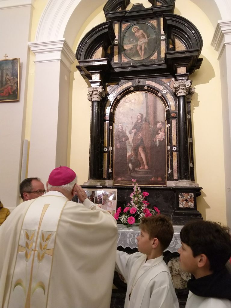 V obdobju epidemije smo sv. Roka kot zaščitnika proti kužnim boleznim še posebej spoznali in se k njemu priporočali. Takrat smo se tudi odločili za restavratorsko obnovo te slike, kot tudi slike sv. Sebastijana in v ta namen v župniji zbrali potrebna sredstva. Obe deli sta bili v že zelo slabem stanju. Obnovo obeh je izvedla restavratorska delavnica Klavdija Zalarja. Oltarno sliko je ob vizitaciji pred sv. birmo 6. aprila blagoslovil koprski škof Jurij Bizjak in se ob tej priložnosti zahvalil za uspešno izveden zahteven restavratorski poseg, ki ga je pred tem orisal restavrator Zalar. Od tedaj se še z večjim zaupanjem priporočamo k sv. Roku, ki nas v svojem sijaju pozdravlja z oltarja.