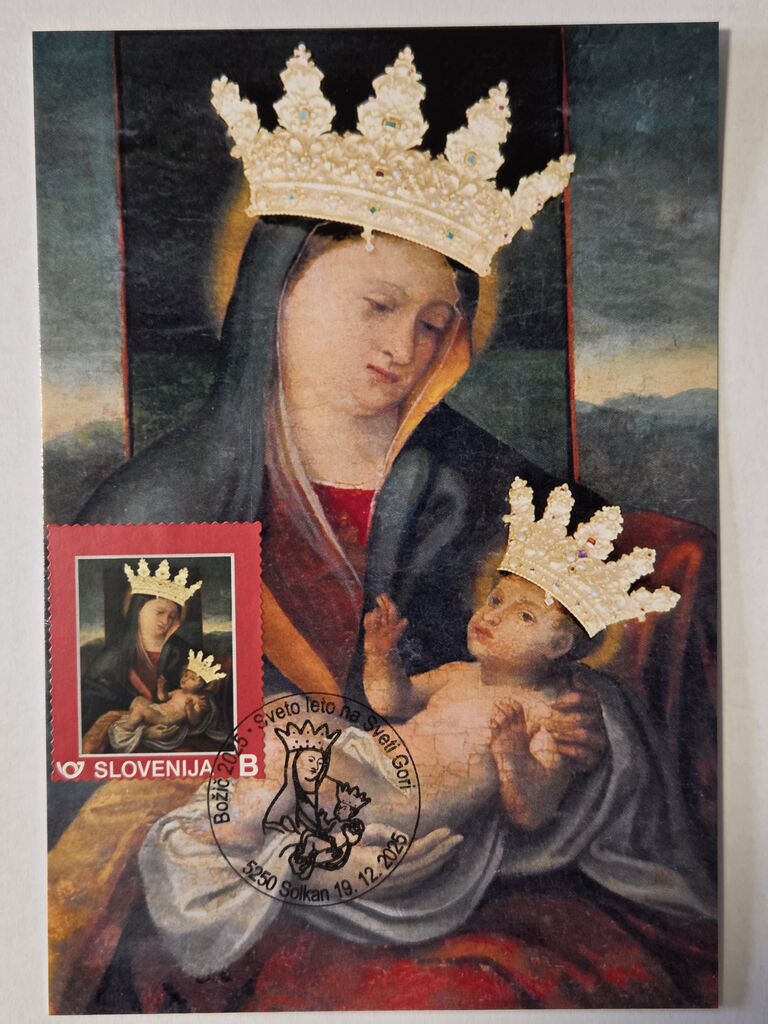 Voščilnica s Svetogorsko Marijo in malim Jezusom je romala za Božič 2025 v najmanj 70 družin. Morda se bodo voščilnice v papirnati obliki z znamkami le ohranile?