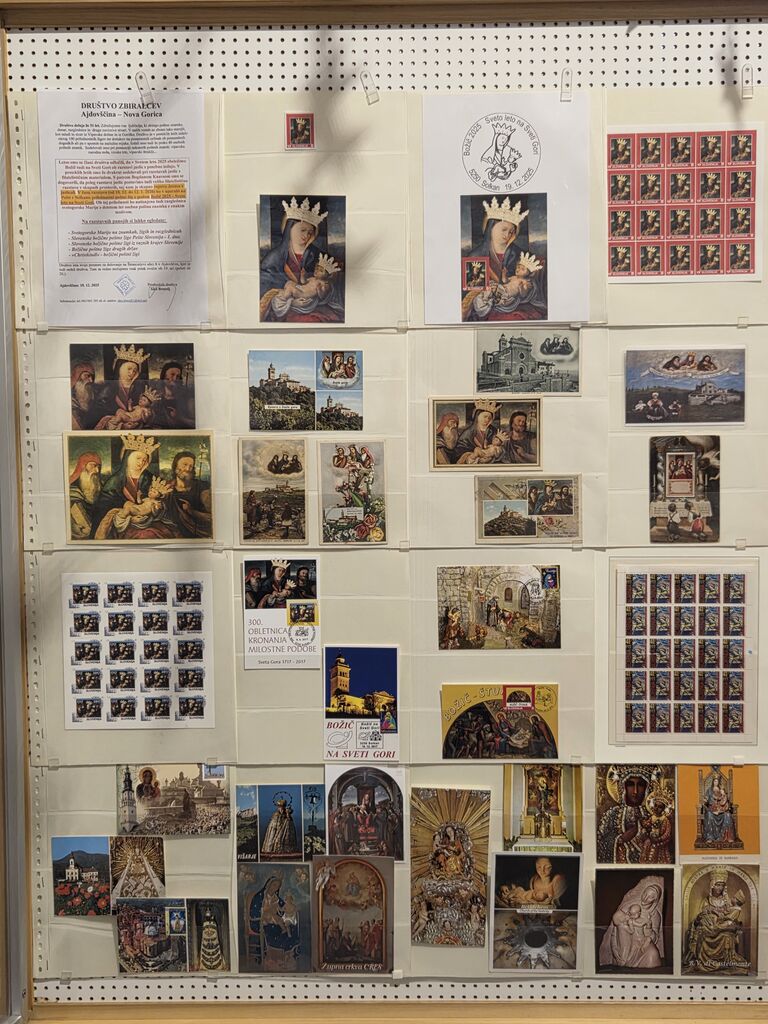 Vsakoletna razstava jaslic na Sveti Gori je bila tokrat malo drugačna kot v preteklih 22-ih letih. V vstopni avli je Društvo zbiralcev Ajdovščina – Nova Gorica postavilo zanimivo filatelistično razstavo, na kateri so v šestih vitrinah prikazali božične voščilnice, na katerih je bil poudarek na božičnih priložnostnih poštnih žigih. V svetem letu 2025 so natisnili razglednico Svetogorske Marije z detetom ter izdali tudi osebno poštno znamko z enakim motivom. Za MAXI KARTO so izdelali tudi priložnostni poštni žig z napisom 'Božič 2025 – Sveto leto na Sveti Gori'.