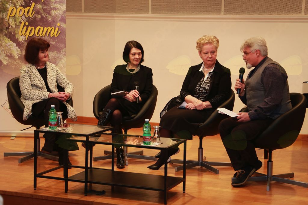 Po ogledu slik smo večer nadaljevali v komorni dvorani Kulturnega centra v okviru že tradicionalnih 'Srečanj pod lipami'. Na temo 'Prepletanja umetnosti in dobrodelnosti' smo v pogovoru sodelovali Franka Žgavec, predsednica KC Lojze Bratuž in dolgoletna kulturna delavka na Goriškem, Anamarija Stibilj Šajn, likovna kritičarka in strokovna sodelavka obeh kolonij ter Jožica Ličen, sodelavka Karitas. Večer je povezoval Jože Bartolj, slikar in kulturni urednik na Radiu Ognjišče. Prepletanje umetnosti in dobrodelnosti smo osvetlili z več zornih kotov, sama sem že več krat ponovila, da človek ne živi samo od kruha in da je umetnost in kultura hrana za dušo vsakega človeka, ki ni nič manj potrebna kot hrana ali obleka, zato je tudi to pomoč, ki jo sodobni človek, v nenehnem pehanju za materialne dobrine, še kako potrebuje.