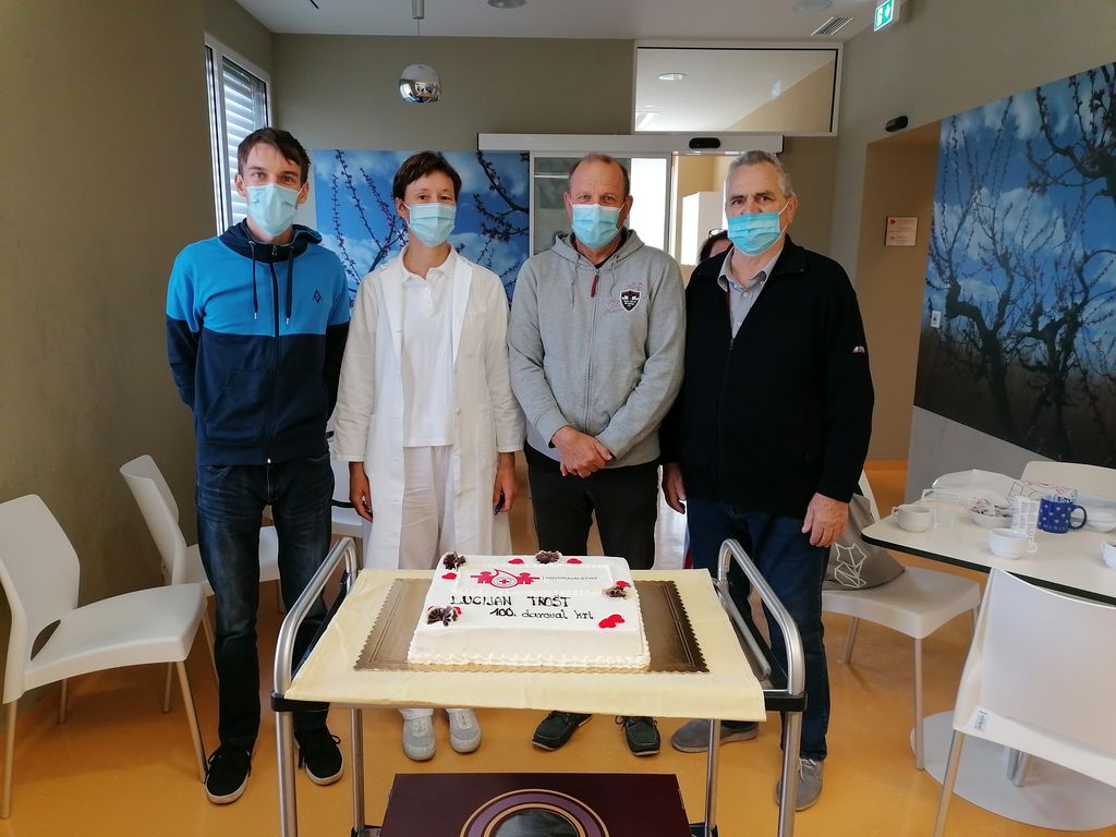 Čestitke gospodu Lucijanu Troštu s Cola za jubilejno stoto darovanje krvi, ki ga seveda ni mogoče doseči čez noč, ampak le, če pomoč sočloveku postane tvoj življenjski cilj! Gospod Trošt življenjsko tekočino daruje od leta 1977, 22. 9. pa je postal vitez krvodajalstva, ko je v Centru za transfuzijsko dejavnost Nova Gorica kri daroval že stotič. Pomenljivo je, da ga je ob tem spremljal sin Franko, študent, ki je kri daroval prvič. Kot je Trošt v šali povedal, je poskrbel za podmladek, saj so krvodajalci vsi v družini. Za njegov izjemen doprinos sta se mu zahvalila vodja CTD Nova Gorica Alenka Medvešček, dr. med., spec. transf. med., in predsednik Rdečega križa Ajdovščina Rajko Troha.