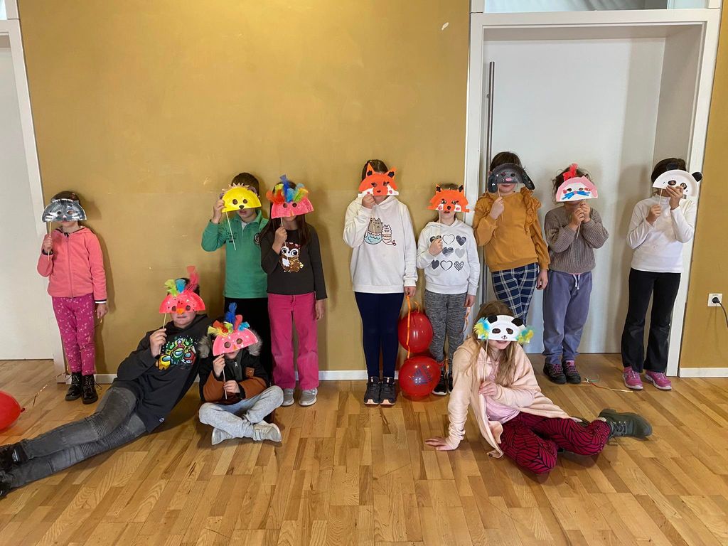 Vetroven četrtek smo najprej pričeli z jutranjim razgibavanjem. Sledilo je ustvarjanje okraskov, s katerimi smo pomladno okrasili Hišo mladih. Počitniški teden pa smo, v duhu prihajajočega pusta, zaključili z izdelovanjem pustnih mask ter rajanjem in karaokami.