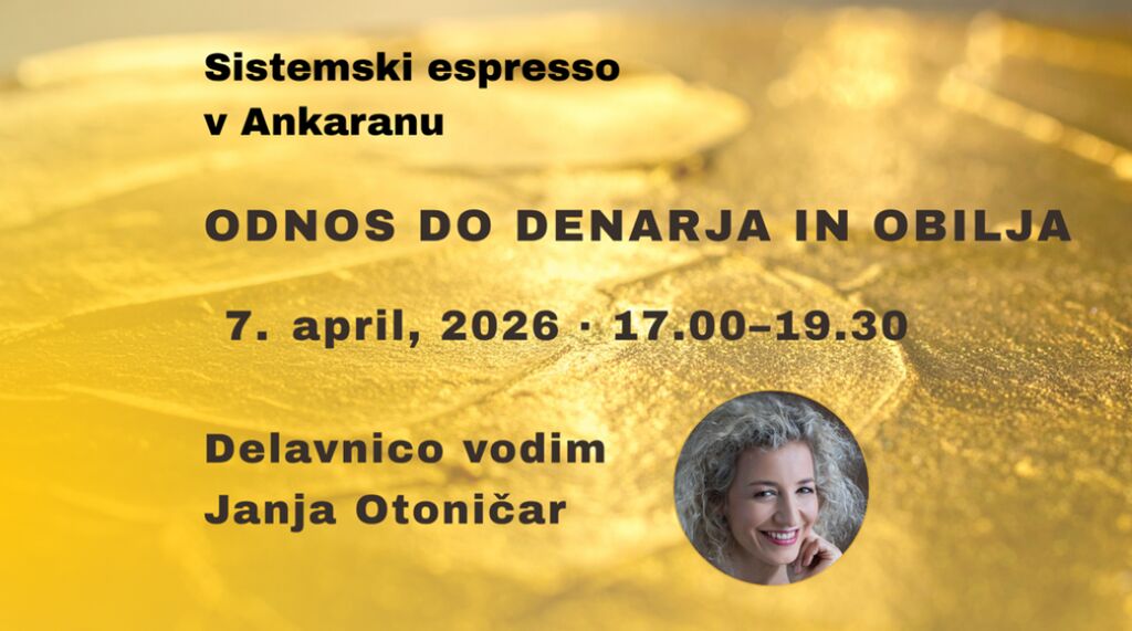 Vabljena na delavnico - sistemski espresso, ki bo 7. aprila 2026 od 17.00 do 19.30 v Ankaranu, z naslovom: ODNOS DO DENARJA IN OBILJA