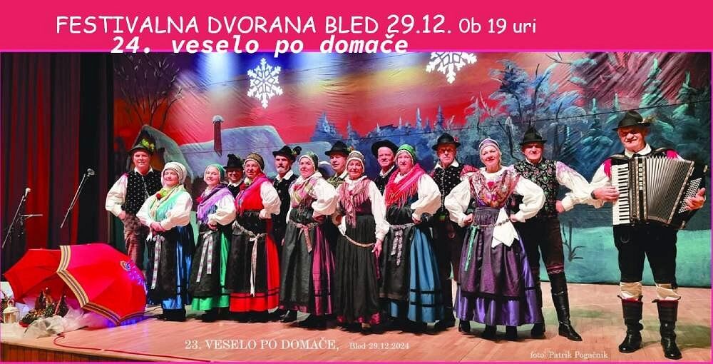 Na Veselo po domače, ki bo 29. 12. 2025 ob 19. uri v Festivalni dvorani na Bledu, vas vse vljudno vabimo člani Folklornega društva Bled.