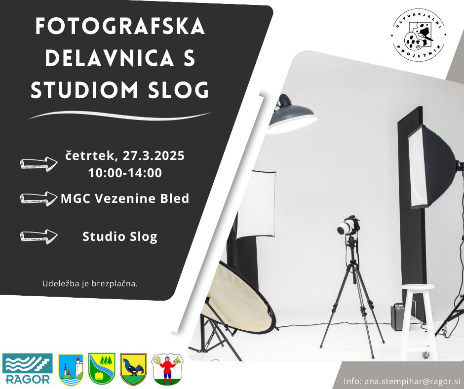 V četrtek, 27. 3. 2025 bo od 10:00 do 14:00 v Medgeneracijskem centru Vezenine Bled potekala Fotografska delavnica s Studiom Slog.