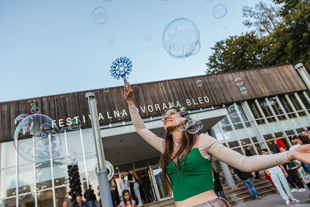 Čarovnija se začne že pred predstavoKer pa noben čarobni večer ni popoln brez pravega presenečenja, vas pol ure pred predstavo čaka ravno to! Tako bosta v predverju Festivalne dvorane obiskovalce pričakala čarodej Brlini in Gute Fee Lusy – dobra vila z igrivimi milnimi mehurčki.