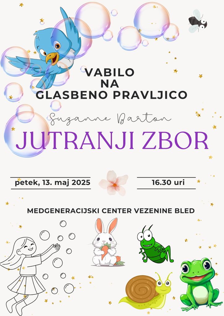 lepo vabljeni na glasbeno pravljico JUTRANJI Jutranji zbor, po zgodbi Suzanne Barton.