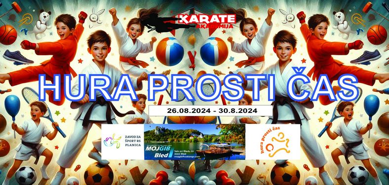 Vabimo otroke Bleda in okolice na nepozabni dogodek "Hura, prosti čas!", ki ga organizira društvo moj gib Bled, v sodelovanju s Karate akademijo in Zavodom za šport RS Planica. Pripravili smo pester program, ki bo poskrbel za veliko zabave in gibanja! Namenjen je splošnim gibalnim ciljem katere bomo popestrili z prvinami borilnih športov.