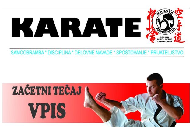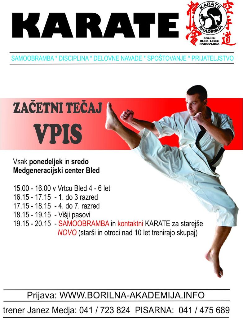 Vpis v karate tečaje za otroke in odrasle sprejemamo na: www.borilna-akademija.info ali pokličte 041723824 trener Janez Medja.