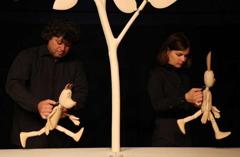 Veseloigra s tekom in petjem za najmlajše v režiji celovitega lutkovnega umetnika Silvana Omerzuja je likovno izčiščena, glasbeno navdušujoča, igriva in dinamična. Na preprosto sestavljivem odru z lesenimi lutkami in rekviziti se pred gledalci odvije napeta in prav do konca zanimiva tekma med sosedoma, ki postaneta prijatelja. Duhovito besedilo je zapisala pisateljica mlajše generacije Saša Eržen, ki se je s slikanico Tista o bolhah lani uvrstila med pet finalistov za nagrado izvirna slovenska slikanica.