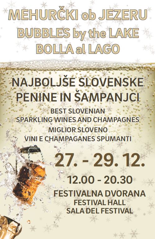 Najboljše slovenske penine in nekaj tujih šampanjcev bodo na voljo od 27. do 29. decembra od 12h do 20h30 v Festivalni dvorani Bled, dogodek pa smo poimenovali Mehurčki ob jezeru.