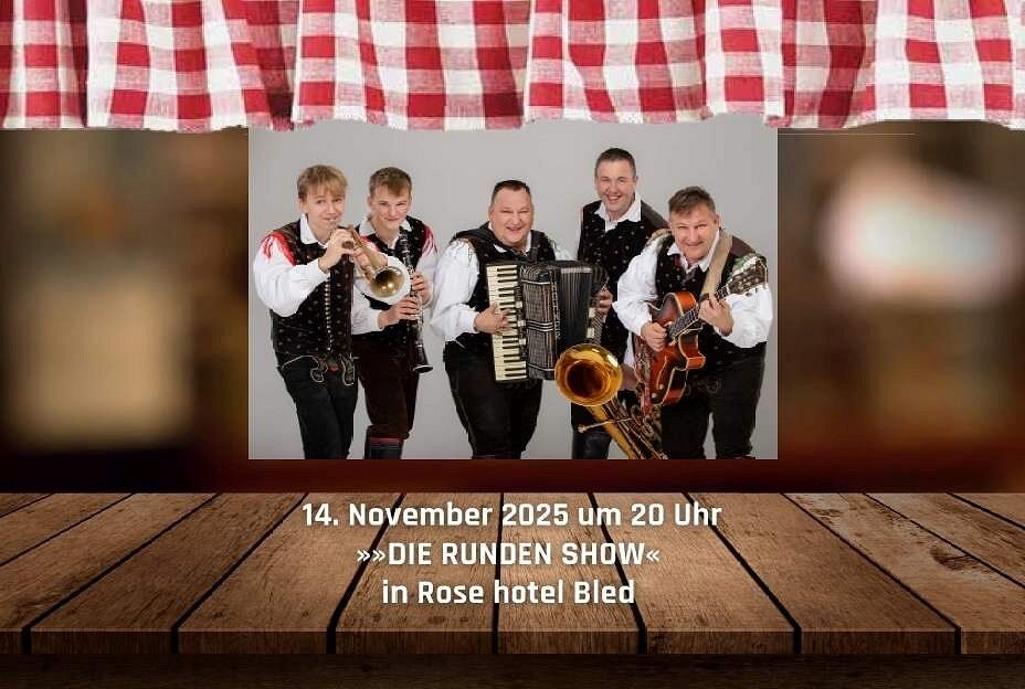 V petek, 14.11., bodo v restavraciji Bled Rose hotela nastopili izvajalci Okrogli muzikantje ("Die Runden Show").