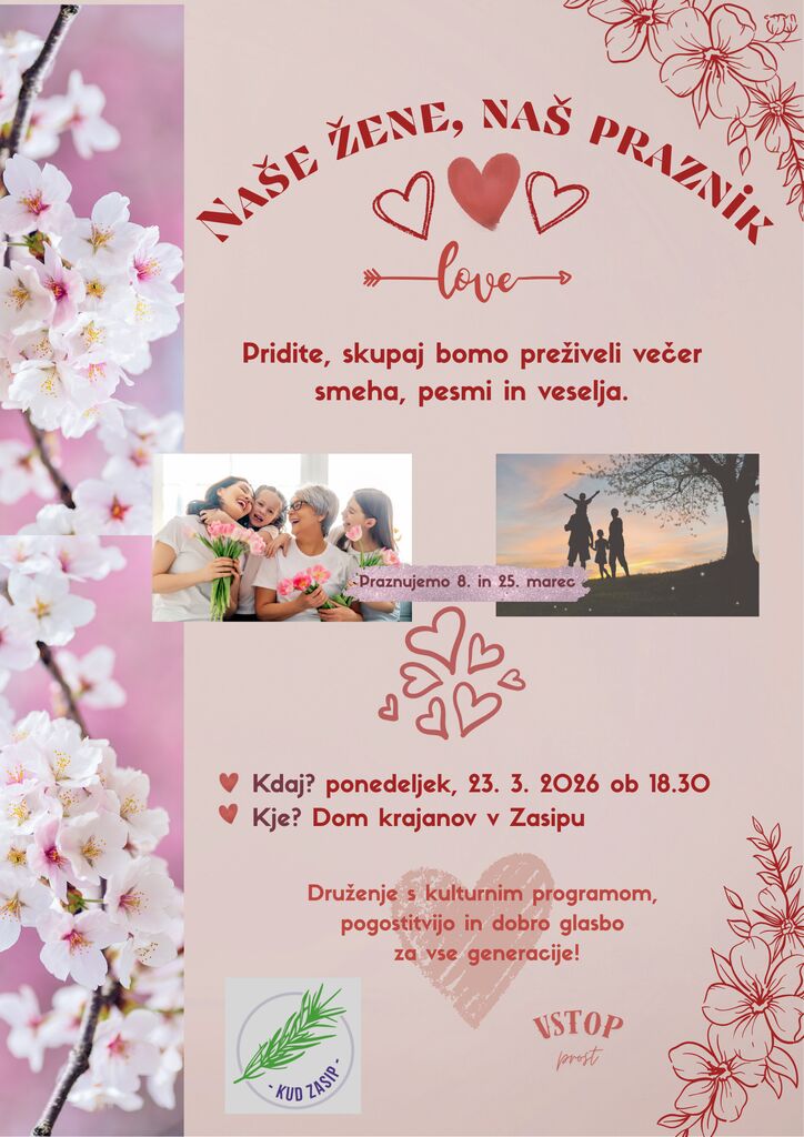 Hvaležni, da se lahko ustavimo ob dveh praznikih, ki nosita posebno toplino - Dnevu žena in Materinskemu dnevu. Praznikih, ki govorita o spoštovanju, o življenju, o skrbi za druge in o moči, ki jo ženske nosimo v sebi - pogosto tiho, a neizmerno.