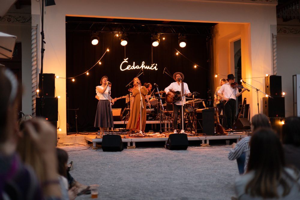 V živo so bili vedno polni presenečenj in iz obdobja v obdobje spreminjajo svojo podobo, zvok in številčnost benda. Tokrat na Bled prihajajo v bendovski obliki in zdi se, da jih vodi povezanost članov na odru ter glasbeno raziskovanje. Letos je deseto leto Čedahuči projekta, v času obstoja pa so izdali eno kratko ploščo (EP) ter tri albume (LP), trenutno pa pripravljajo že četrti album ‘Zrcalo’, za katerega sicer še ne poznamo datuma izida, a morda si lahko obetamo, da bomo svoj odsev v novem albumu lahko uzrli že letos.