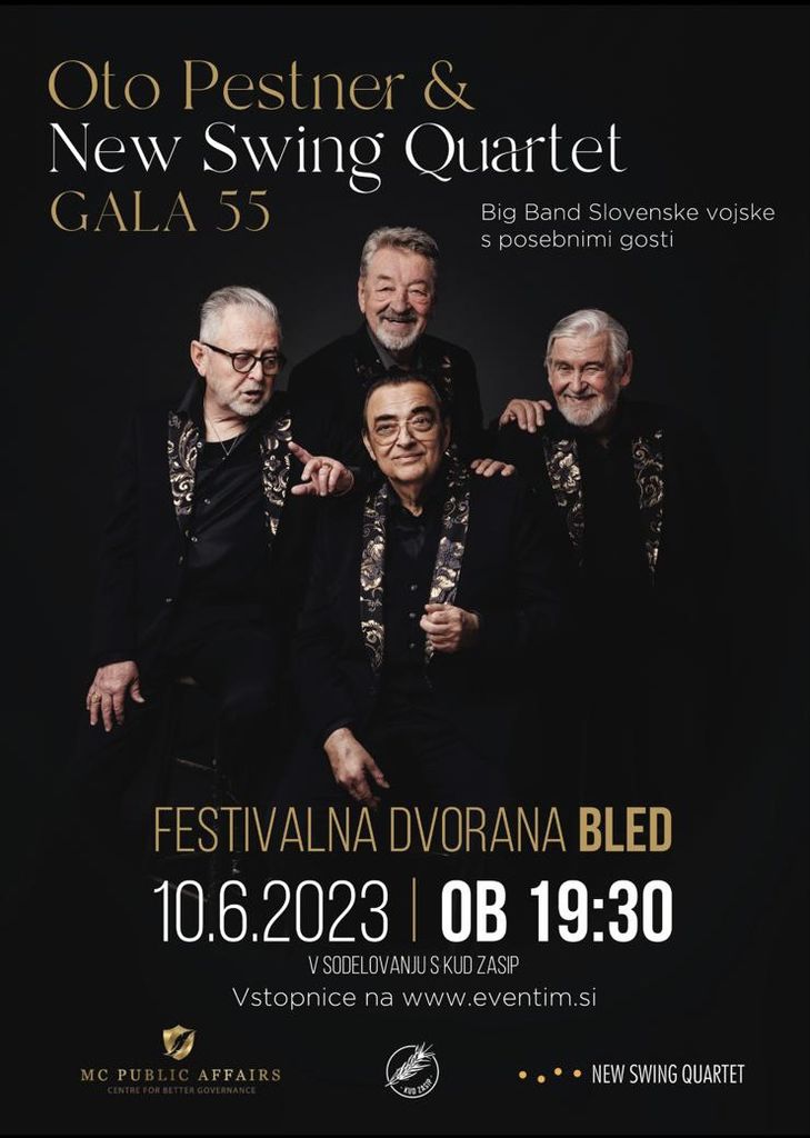 Veliki - gala koncert Ota Pestnerja, New swing quarteta s posebnimi gosti ob 55-letnici delovanja se prične s turnejo v Sloveniji in izven nje na našem Bledu.