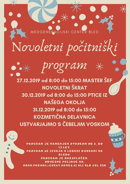 Program bo potekal v prostorih Medgeneracijskega centra Bled v Športni dvorani od 8:00 do 15:00.
