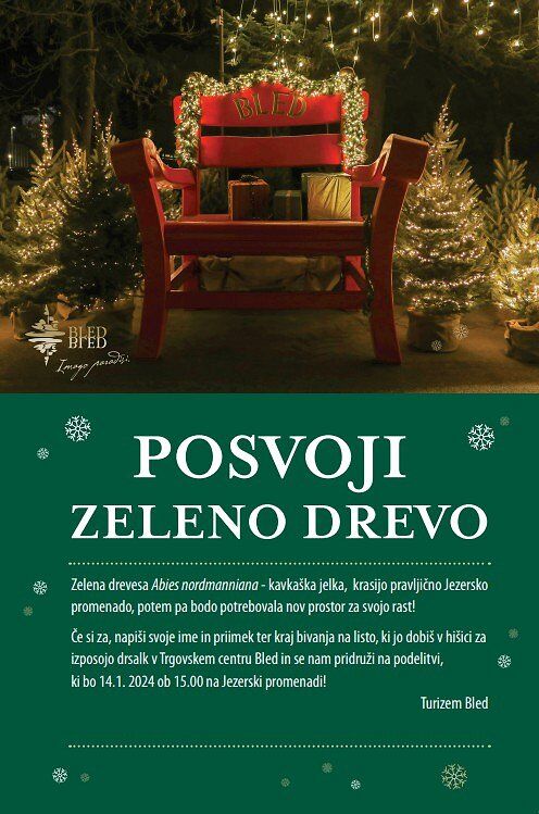 Vse tiste, ki bi si želeli posvojiti jelko vabimo, da se oglasite pri hišici za izposojo drsalk v Trgovskem centru Bled. Tam boste dobili list, na katerega vpišete svoje ime, priimek in kraj bivanja nato pa se nam pridružite na podelitvi, ki bo 14.1.2024 ob 15.00 na Jezerski promenadi.