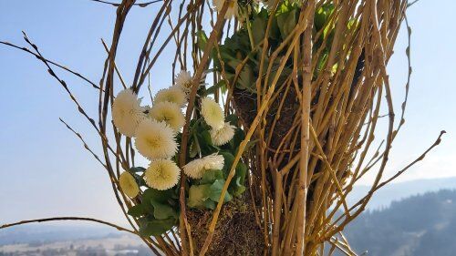 Z medsebojnim sodelovanjem in mislijo na trajnostno delovanje so večino uporabljenih materialov nabrali v naravi in jih skupaj z dekorativnimi materiali vključiti v cvetlične izdelke.