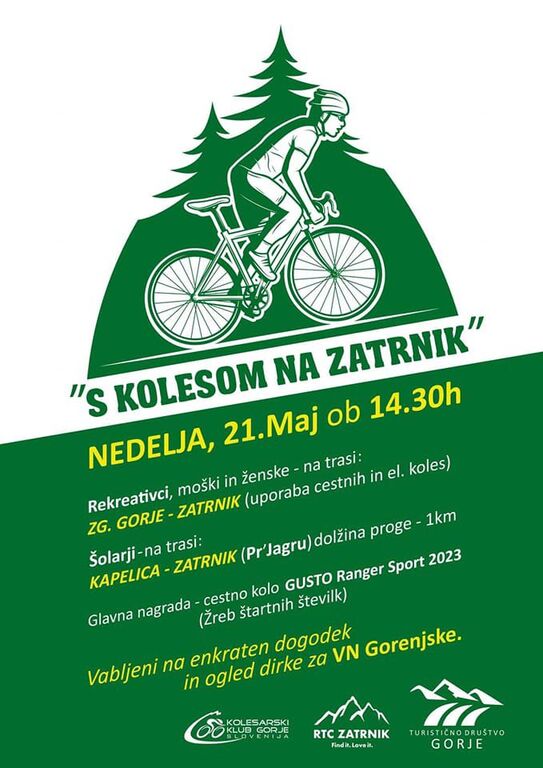 Vabljeni na rekreativni izziv S kolesom na Zatrnik, katerega se lahko udeležite pred kolesarsko dirko za Veliko nagrado Gorenjske powered by I Feel Slovenia.