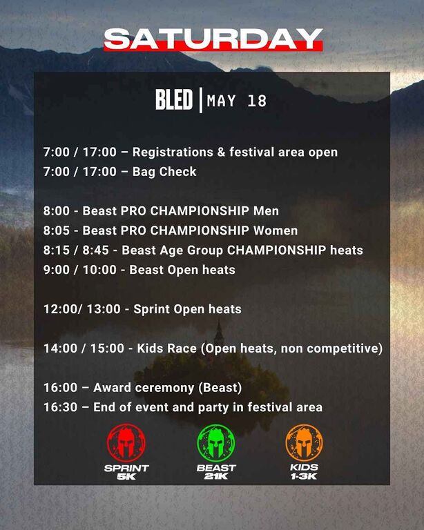 Spartan Race bo tekmovalce pozdravil v Mali Zaki na Bledu, 18. in 19. maja. Tekma se bo odvijala na treh razdaljah (Sprint: 5 km in 20 ovir; Super: 10 km in 25 ovir; Beast: 21 km in 30 ovir), v treh kategorijah (Elite za resne športnike, po starostnih skupinah in v odprti kategoriji - tudi za rekreativce in skupine prijateljev), otroci pa se bodo preizkusili na svojem poligonu Kids Race - tekmovalno ali netekmovalno.