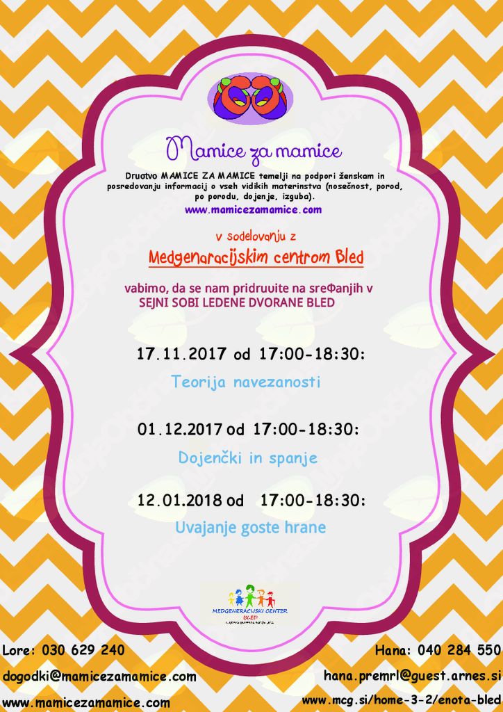 Društvo Mamice za mamice bo v sodelovanju z Medgeneracijskim Centrom Bled organiziralo srečanja za mamice.