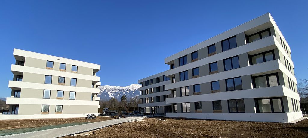 Nepremičninski sklad pokojninskega in invalidskega zavarovanja, d.o.o. ima v lasti 409 oskrbovanih najemnih stanovanj v 17 krajih po Sloveniji. V naslednjih mesecih bo zaključena gradnja 60 oskrbovanih najemnih stanovanj ob Medgeneracijskem centru, v neposredni bližini supermarketa Spar Bled. Objekta bosta obsegala klet, pritličje in tri nadstropja, v vsakem objektu bo 30 oskrbovanih najemnih stanovanj velikosti od 40 do 70 m2, ki bodo primerna za bivanje ene ali dveh oseb. V vsakem objektu bodo opremljen skupni prostor za druženje stanovalcev, kolesarnica in pralnica. Skupaj bo na voljo 50 parkirnih mest, od katerih jih bo 16 namenjenih invalidom. V podzemni garaži bo 35 parkirnih mest, preostalih 15 pa pred objektoma. Dostopi do objektov, objekta in stanovanja bodo arhitekturno prilagojeni za starejše (dvigalo, držala, širši prehodi, prilagojena oprema ...). Vsa stanovanja bodo imela kopalnico, ložo in shrambo. Opremljeni bosta kuhinja (leseni del, električna kuhalna plošča, korito in napa) in kopalnica (arhitekturno prilagojena z držali, s prho, bidejem in priključkom za pralni stroj).