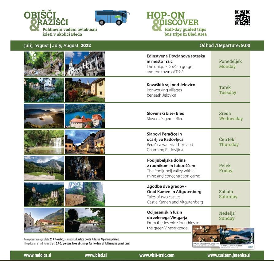 Turizem Bled tudi letos organizira avtobus Hop on Hop of, ki goste Bleda aktivno vabi k raziskovanju Bleda in njegove okolice. Več na fotografiji.
