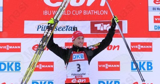 Na fotografiji: Jakov Fak na zmagovalnem odru, foto: SZS