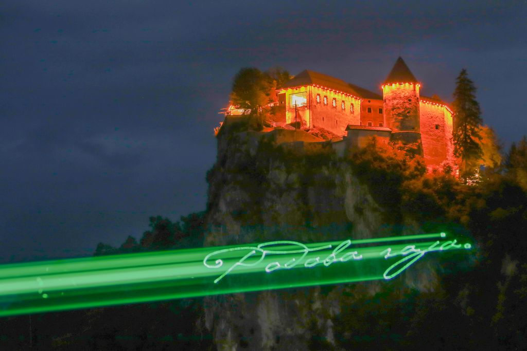 Kot je znano, je Občina Bled že nekajkrat ob posameznih in pomembnih dogodkih dovolila svetlobne projekcije na grajsko skalo, med drugim ob svetovnem dnevu preprečevanja raka materničnega vratu ter ob obletnici ustanovitve poljskega sindikata Solidarnost. Tokrat se je odločila, da bo grajsko skalo s posebnim sporočilom na predvečer praznika osvetlila za vse prebivalce in prebivalke Republike Slovenije.