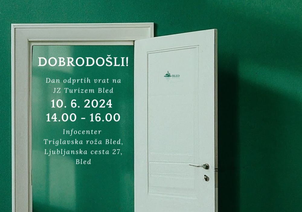 Javni zavod Turizem Bled ponovno vabi občane, občanke in ostalo zainteresirano javnost na Dan odprtih vrat, ki bo potekal na sedežu zavoda (stavba Infocentra Triglavska roža Bled, Ljubljanska cesta 27, 4260 Bled) v ponedeljek, 10. junija, med 14. in 16. uro. Za obisk zavoda na ta dan predhodna najava ni potrebna.