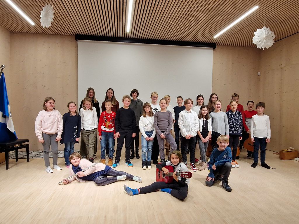 Tradicionalno že vrsto let zadnji teden pred počitnicami pripravimo Praznični koncert v dveh delih.V ponedeljek je bil na sporedu nastop naših najmlajših učencev. Pod mentorstvom Nuše Piber, Primoža Kerštanja, Katje Zupan, Neže Kavčič in Nike Frelih so nastopili učenci uvajanja, solfeggia od 1. do 3. razreda, posamezni inštrumentalisti iz teh oddelkov in Otroški pevski zbor DO RE MI.