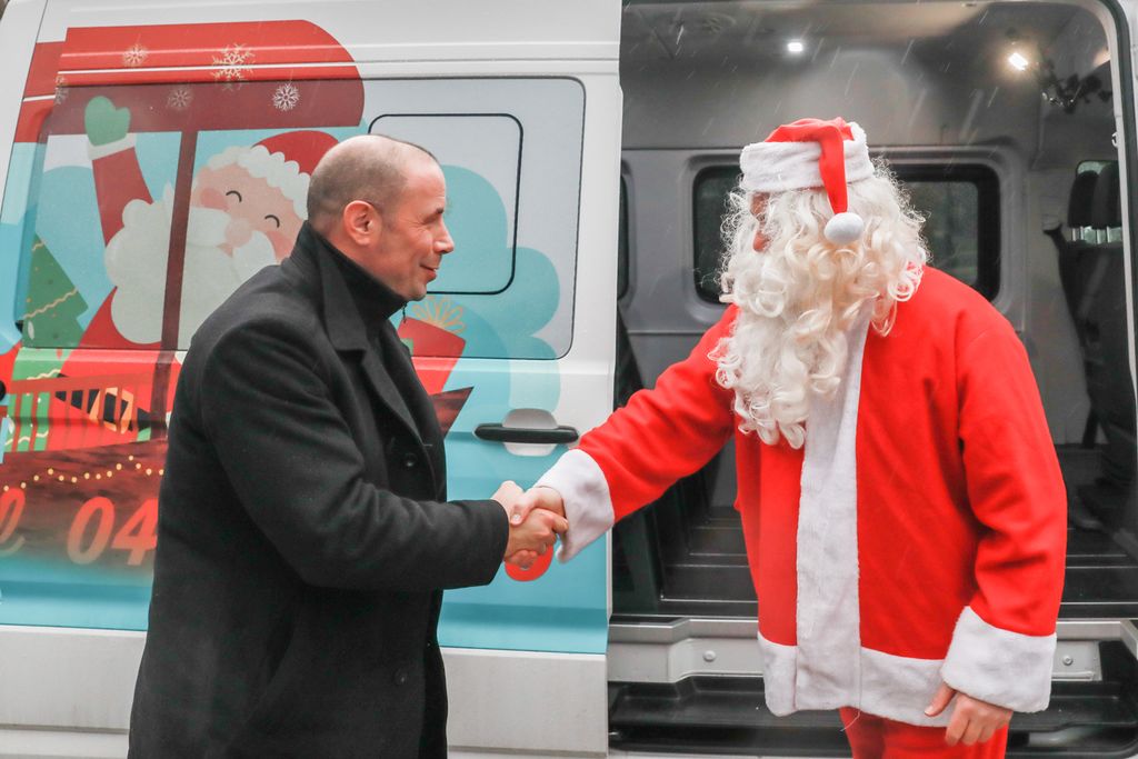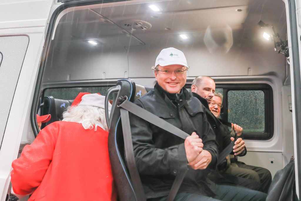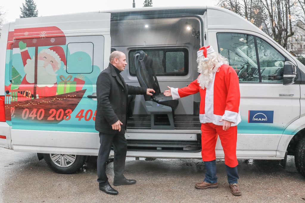 Vozilo so svojemu namenu slovesno predali v petek, 20. decembra, ob 16. uri, v preddverju Festivalne dvorane Bled.Spremljali so ga jelenčki Glasbenega centra DO RE MI, ki so se na prizorišče pripeljali s pletno.