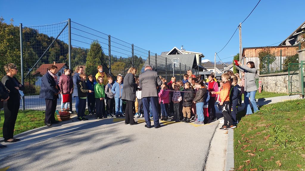 V okviru investicije je Občina Bled poskrbela za ureditev robnikov, namestitev klopi in ozelenitev neuglednih makadamskih površin v bližini igrišča. Z zatravitvijo si Občina Bled želi postopnega zmanjševanja motornega prometa v okolici šole in spodbujati učence, da bi v šolo prihajali peš, s kolesi, skiroji. Zaželen je tudi prihod s šolskim avtobusom do avtobusne postaje Ribno, od koder učenci pešačijo v šolo.