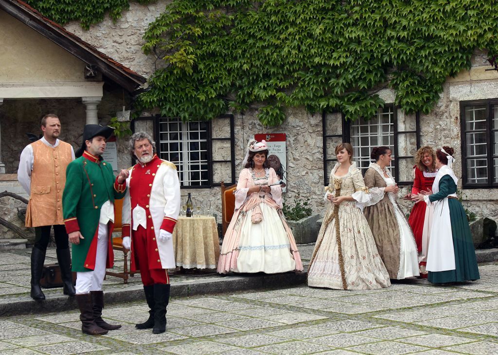 V soboto bo na spodnji terasi gradu, pri vodnjaku, do 20. ure kaligrafska delavnica radovljiškega Pleiades cluba, ki se bo v drugem delu (20.00 – 24.00 ure) preselila na zgornjo teraso pod lapidarij. Ob 20.30 uri bo na zgornji terasi nastopila etno skupina Ba-rock, prav tako iz Radovljice, za njimi pa srednjeveška skupina viteza Gašperja Lambergarja z uprizoritvijo baročne predstave Junaške Blejke. Prav malo pred njihovim nastopom bo zašlo tudi sonce, nebo bodo prekrile zvezde, ki jih bodo obiskovalci lahko opazovali skozi tri teleskope. Vstop na grad je v času prireditve, od 18h do 24h brezplačen.