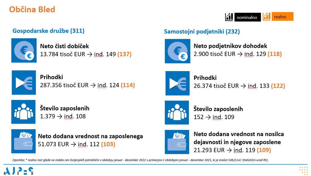 Kako so poslovni subjekti v gorenjskih občinah poslovali v letu 2022?